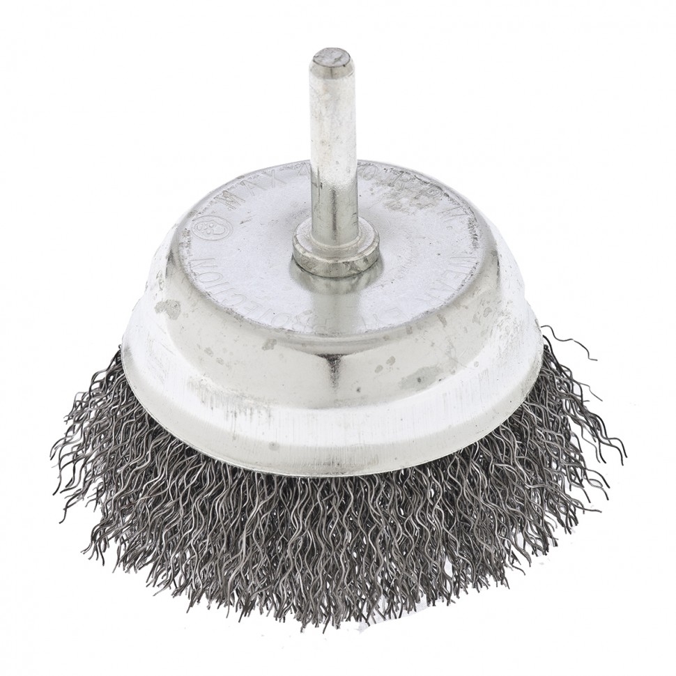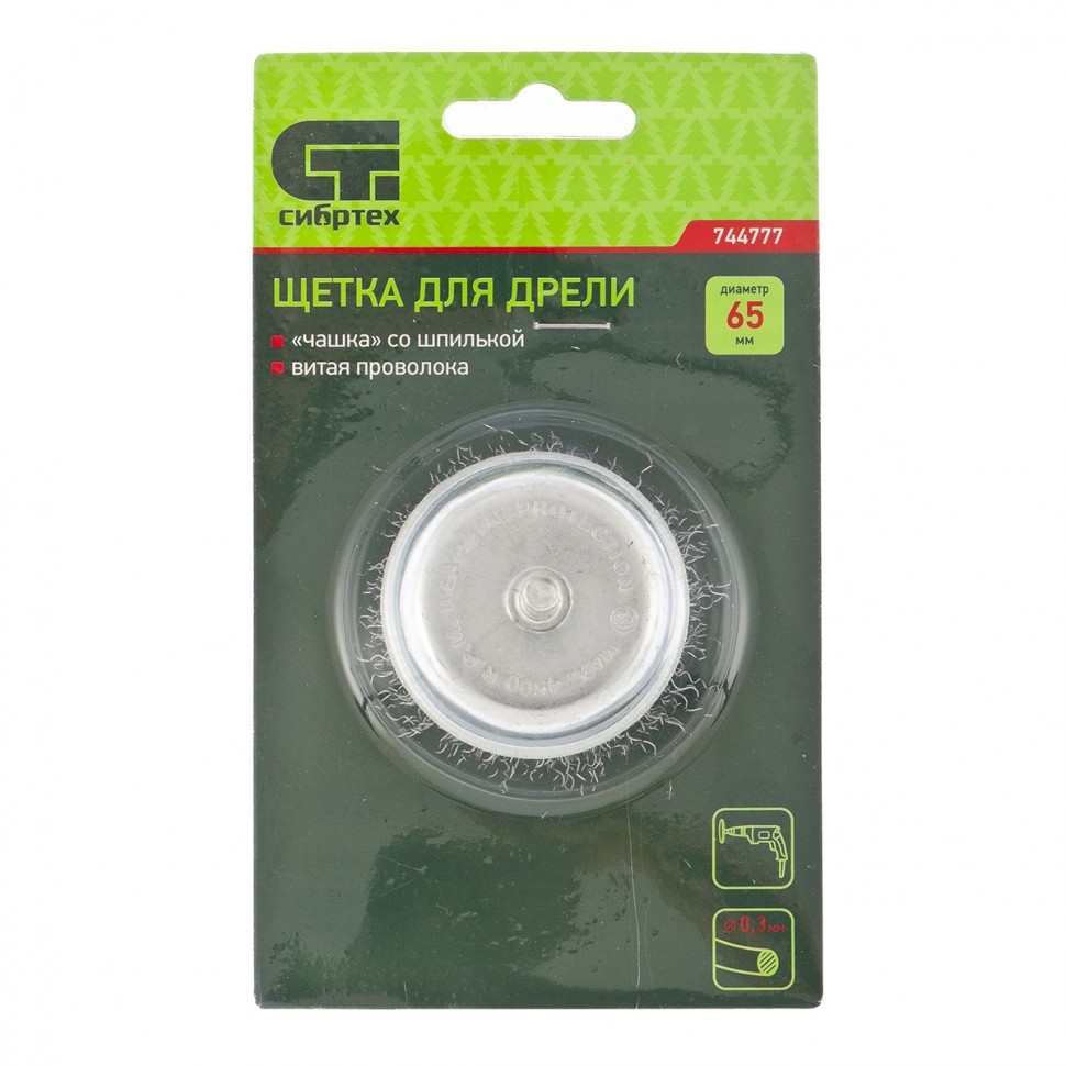 Щетка для дрели «чашка» Сибртех 744787 диаметром 75 мм, со шпилькой 6 мм, с щетиной из витой проволоки 0,3 мм, предназначена для щадящей обработки значительных по площади металлических, деревянных и пластиковых поверхностей — удаления загрязнений, остатков краски и лака, придания шероховатости или подчеркивания структуры материала. Щетка имеет форму чашки, что увеличивает площадь прилегания щетины к обрабатываемой поверхности. Насадка с хвостовиком 6 мм устанавливается в патрон электродрели, поддерживающей работу со скоростью 4500 об/мин. Во время работы с инструментом обязательно использование защитной одежды и обуви, очков, респиратора и наушников. Щетку применяют в профессиональной сфере и в быту. Преимущества Щетина изготовлена из высококачественной стальной проволоки, обеспечивающей долговечность оснастки. Витая проволока принимает изначальную форму после снятия нагрузок, поэтому щетина не деформируется при интенсивном использовании. На корпус нанесено цинковое покрытие, а на щетину — техническое масло