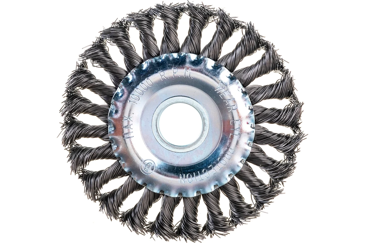 Плоская щетка Сибртех 746327 диаметром 125 мм и посадкой 22,2 мм, с щетиной из крученой проволоки толщиной 0,5 мм, устанавливается на вал УШМ, поддерживающей скорость вращения не более 10000 об/мин. Эффективно удаляет загрязнения, толстый слой ржавчины и лакокрасочных материалов с поверхностей, поэтому используется для проведения грубой (черновой) обработки. Плоской щеткой удобно очищать труднодоступные места, в том числе углы и изгибы.