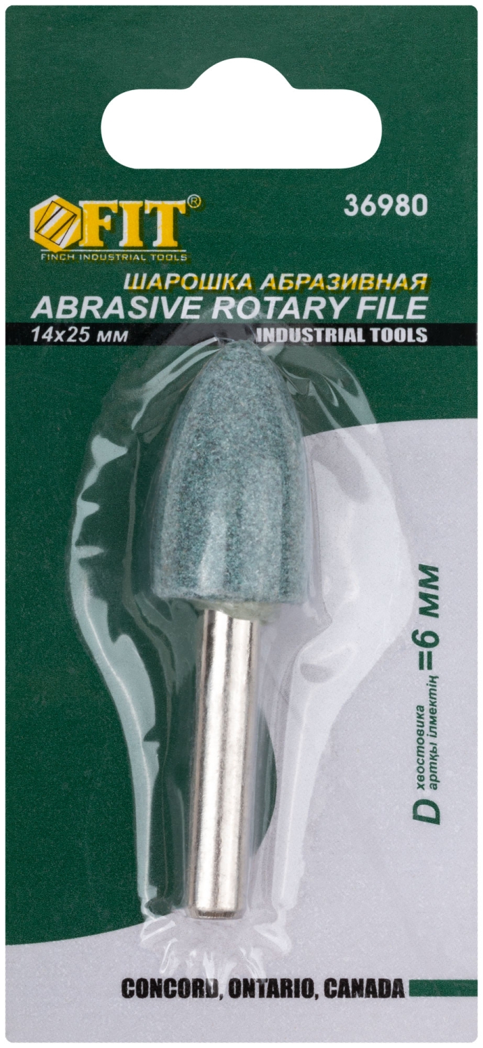 Шарошка абразивная по камню, мрам.,каф., хвостовик 6 мм, цилиндр с остр.наконеч. 14х25 мм