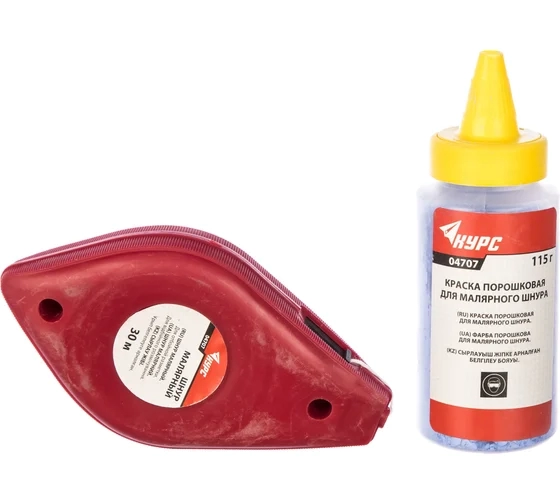 Шнур малярный отбойный, ABS пластик.корп. 30 м + краска разметоч. 115 гр