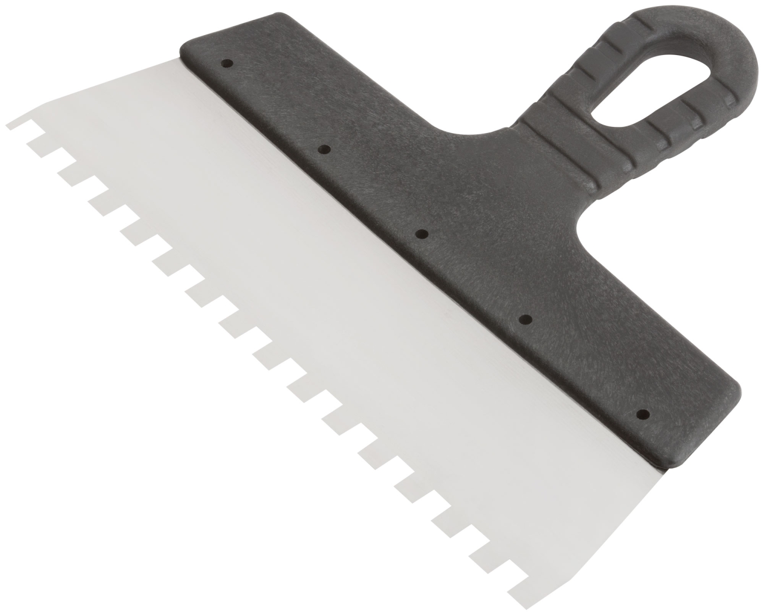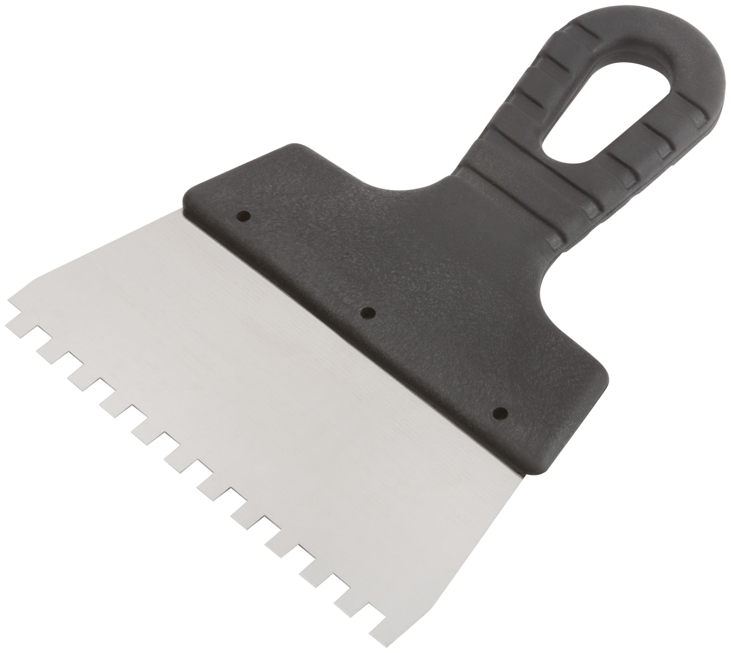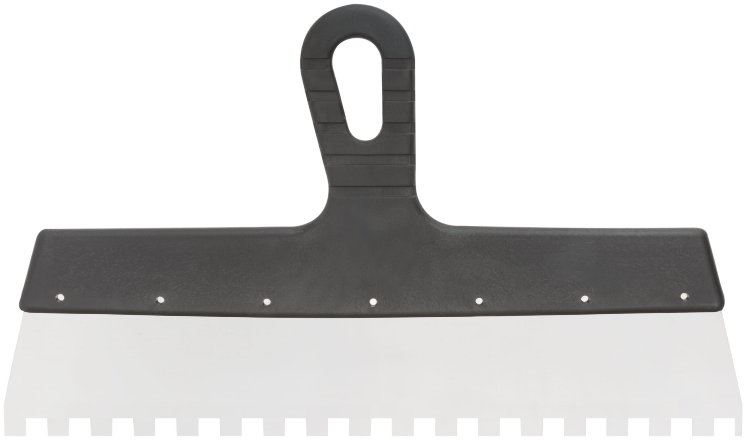 Зубчатый. Для работы на поверхностях большой площади. Материал: нержавеющая сталь, пластиковая ручка.