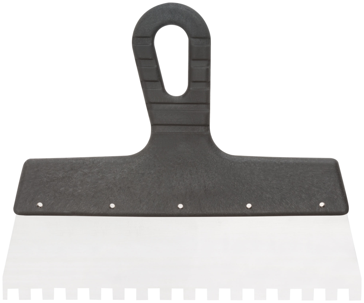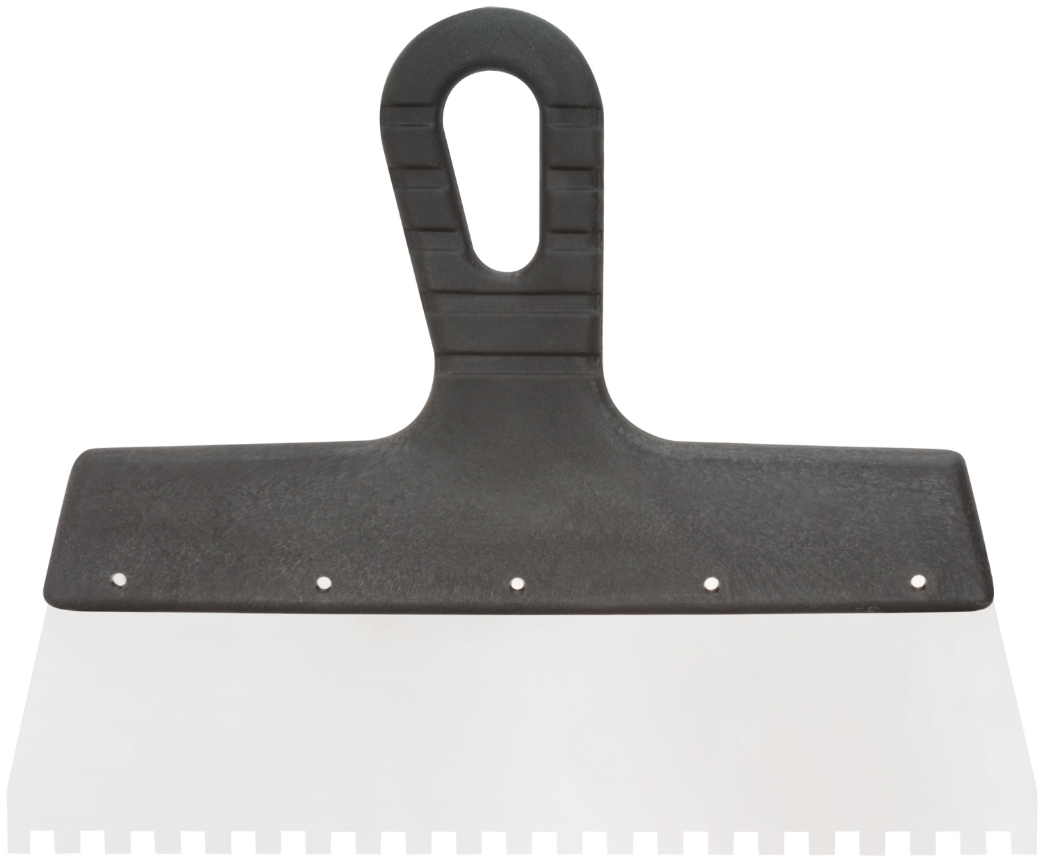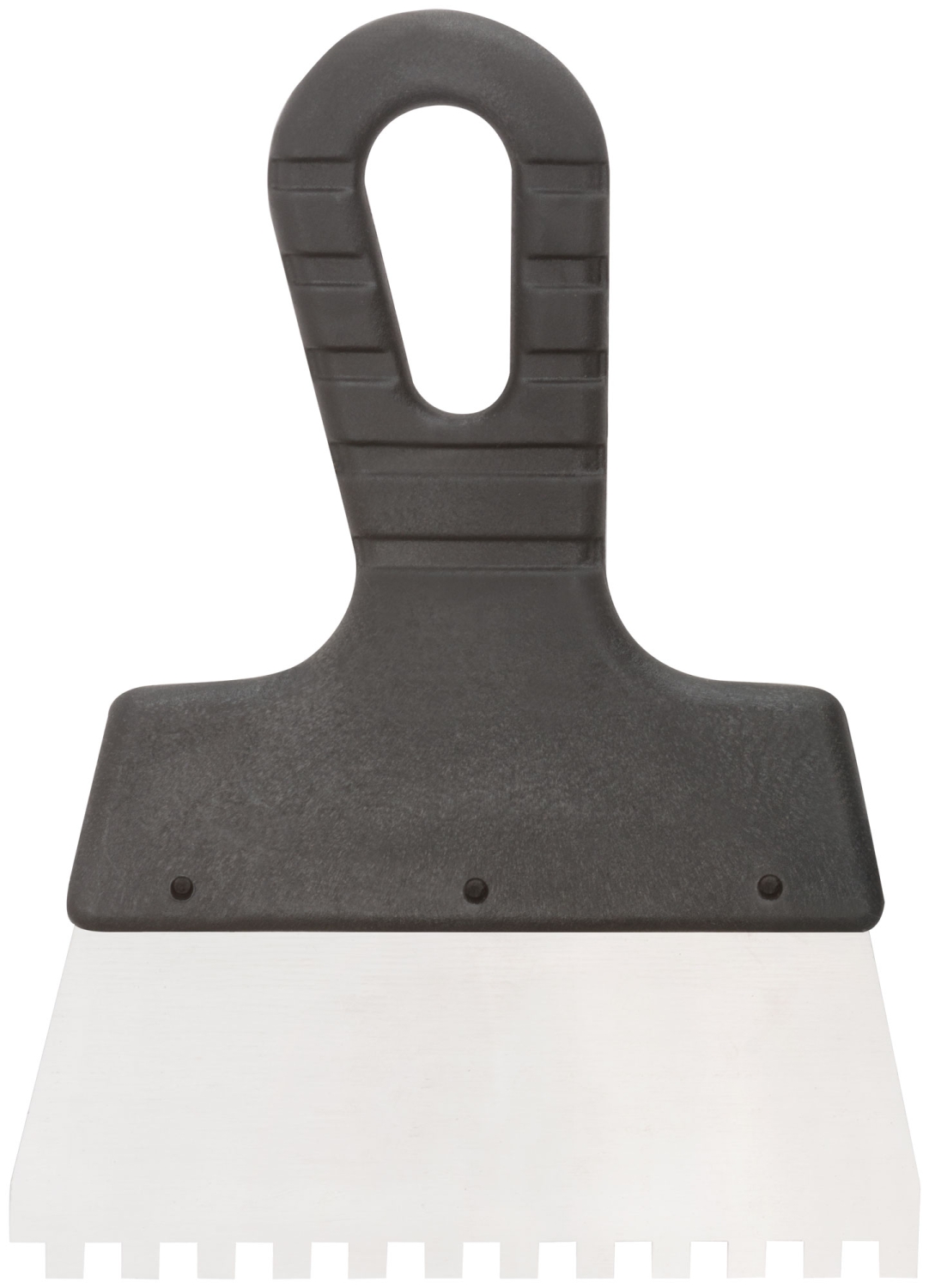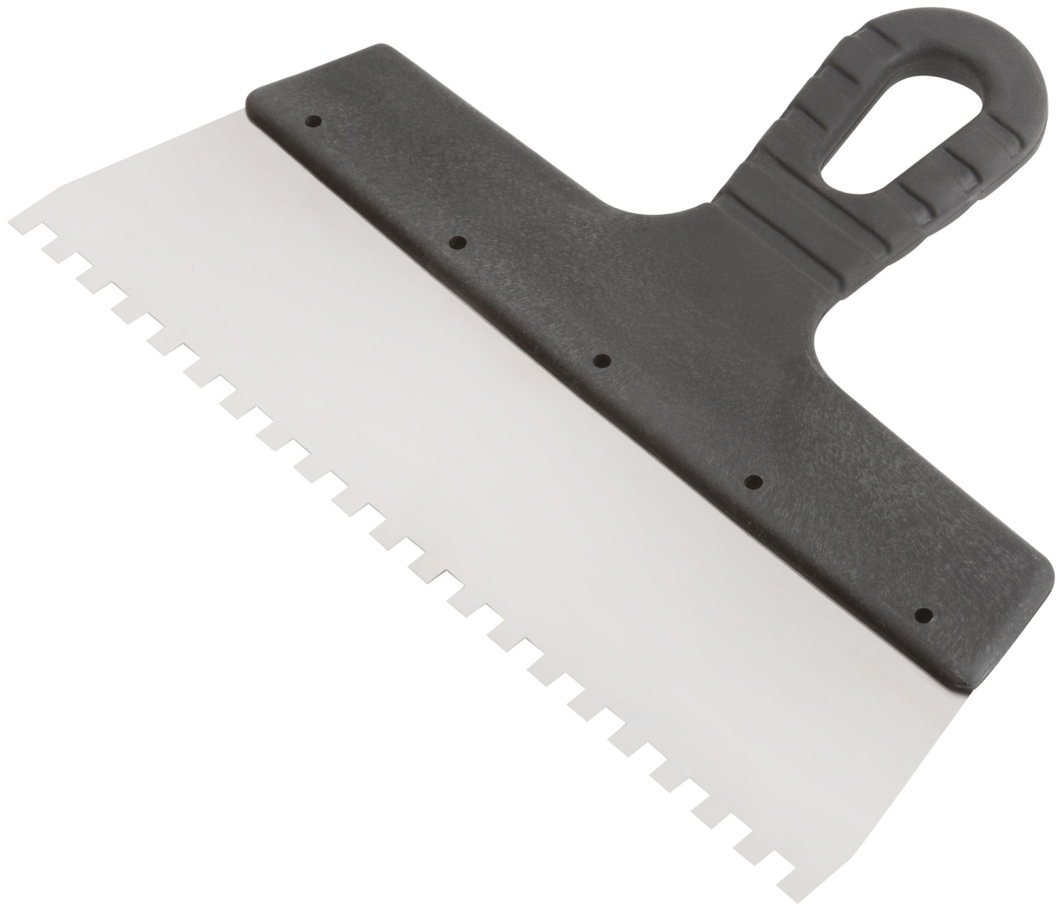 Зубчатый. Для работы на поверхностях большой площади. Материал: нержавеющая сталь, пластиковая ручка.