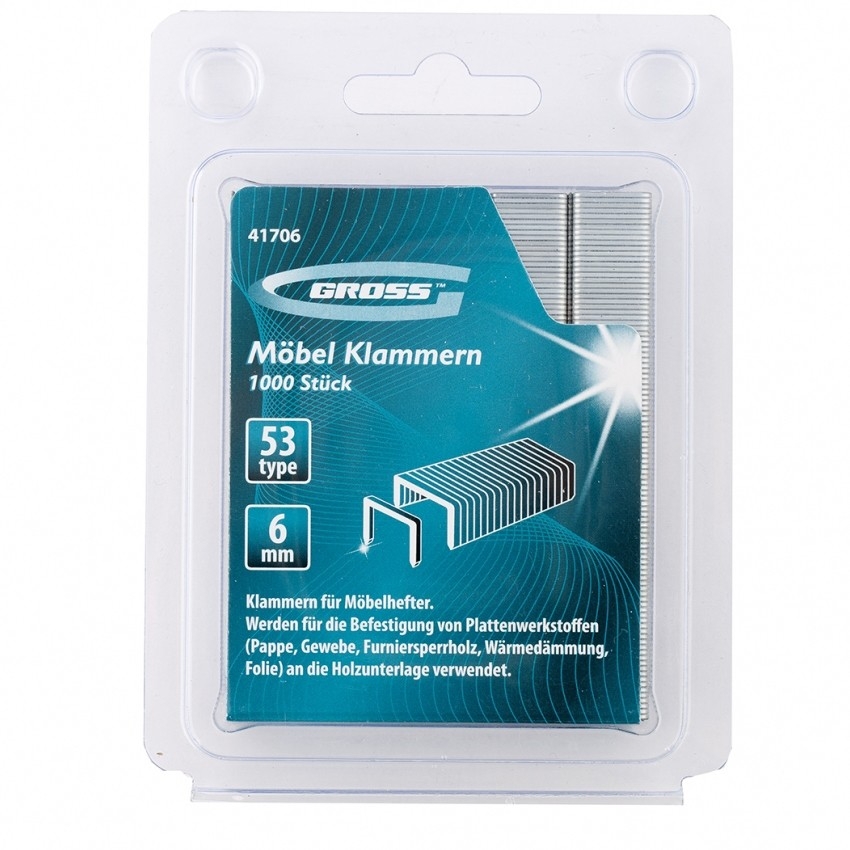| Скобы для степлера мебельного усиленные тип 53 6 мм 1000 шт Gross | 41706 | 1 шт. |