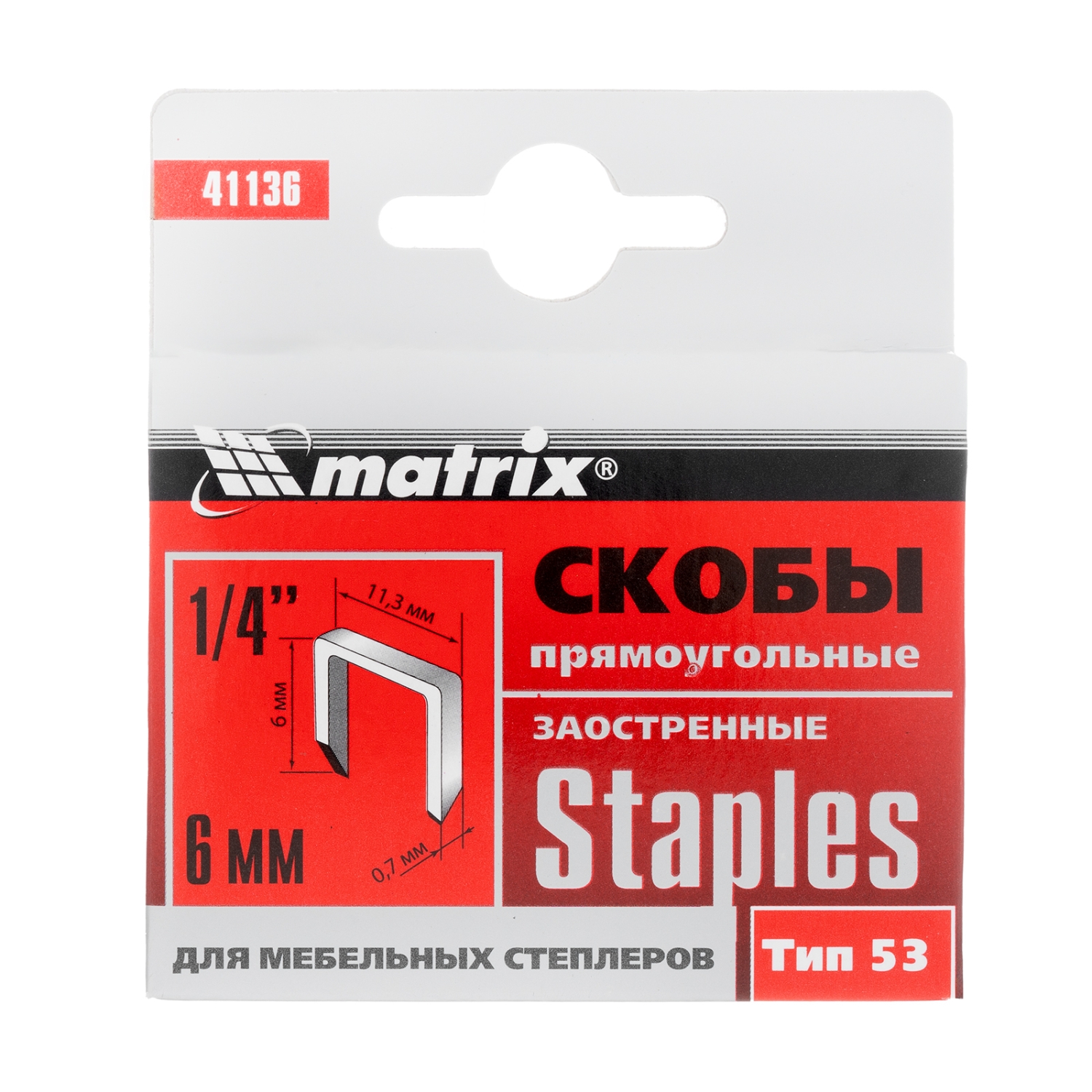 Скобы для степлера мебельного заостренные тип 53 6 мм 1000 шт Matrix