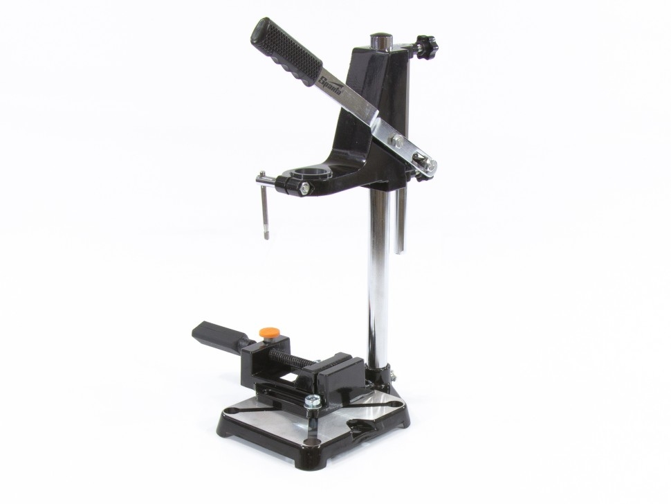 Станок Sparta 934055 с тисками позволяет закрепить дрель в вертикальном положении и использовать ее в качестве сверлильного станка. Он существенно облегчает работу с дрелью, позволяет использовать ее для фрезеров