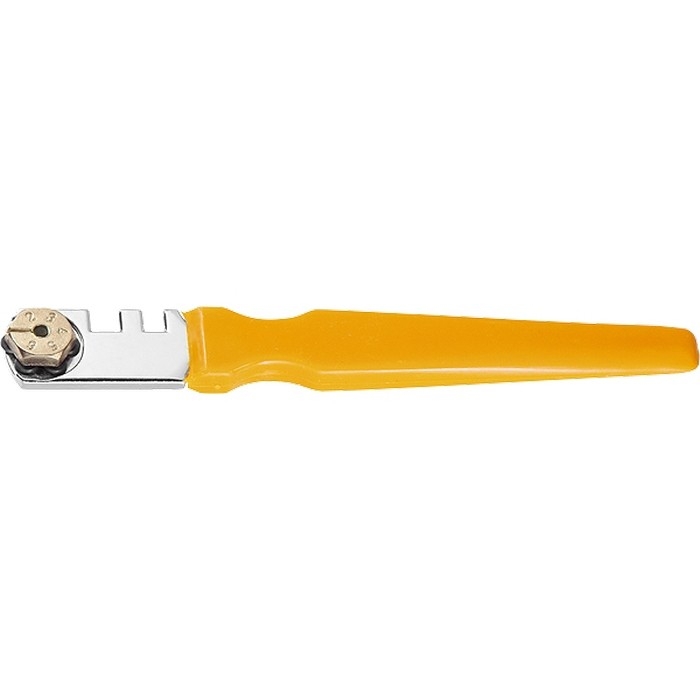 Металлическая головка обеспечивает прочность конструкции и увеличивает срок службы стеклореза.