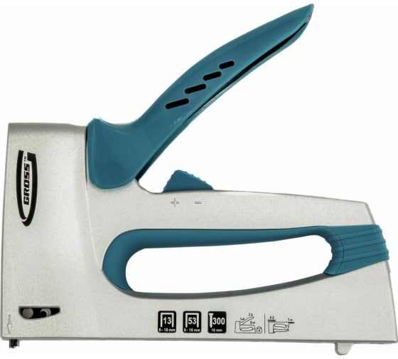 Степлер мебельный регулир., алюм.корп.,тип скобы 13,53,300, 6-16 мм Gross