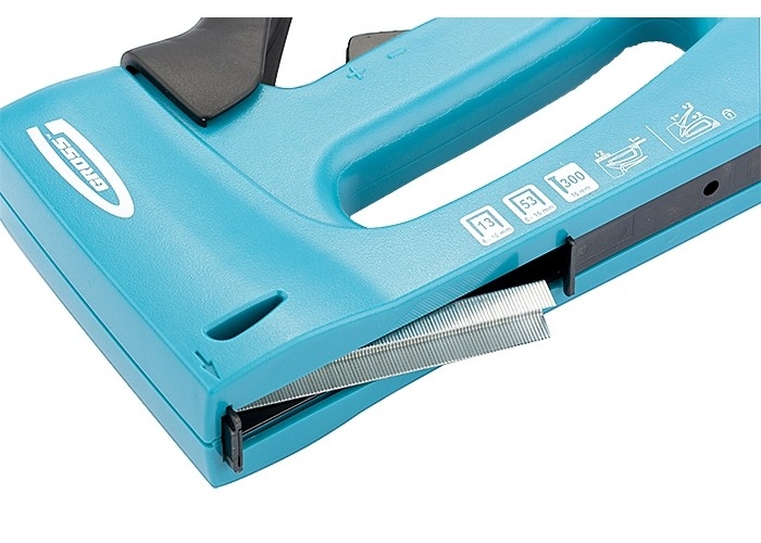 Быстрая загрузка скоб упрощает подготовку инструмента к работе и удаление заклинивших крепежей.
