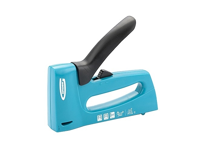Мебельный степлер Gross 41003 в пластиковом корпусе, с функцией регулировки силы удара, совместим со скобами типа 13, 53 размером 6-16 мм и гвоздями типа 300 размером 16 мм. Его используют для быстрого крепления на деревянном основании фанеры, оргалита, ДВП, ДСП, пленки, утеплителя и других листовых материалов. Корпус устойчив к повреждениям, поскольку отлит из ударопрочного пластика. Двухпозиционный переключатель позволяет регулировать силу удара в зависимости от длины скоб и твердости материала. Действия в труднодоступных местах облегчает длинный тонкий носик. Инструмент идеально сбалансирован, что сводит отдачу к минимуму. Степлер пригодится при сборке и обшивке мебели, укладке ковровых покрытий и изоляционных материалов, выполнении багетных работ. Подходит для профессионального применения.