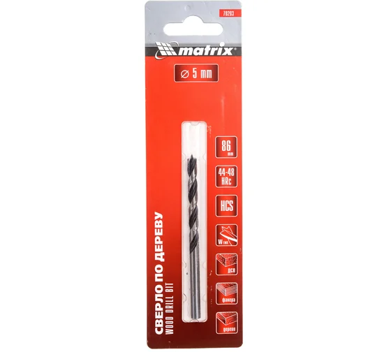 Сверло по дереву, цилиндр.хвостовик 5х86 мм Matrix