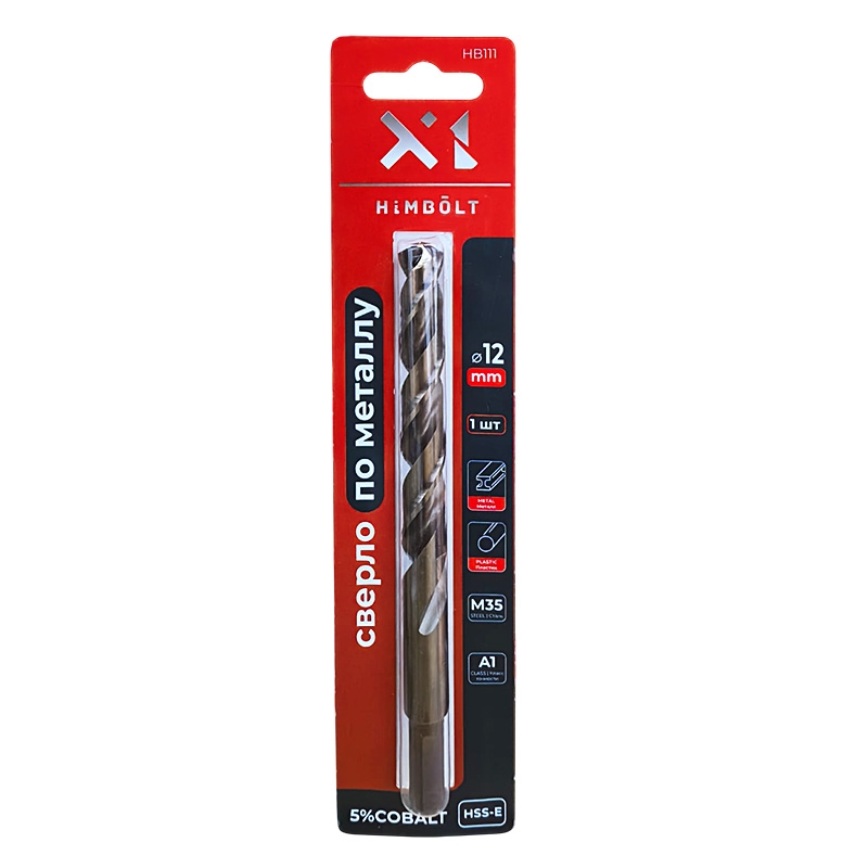 Сверло по металлу с кобальтом 5% P6M5K5 12,0 мм HIMBOLT 1 шт.блистер