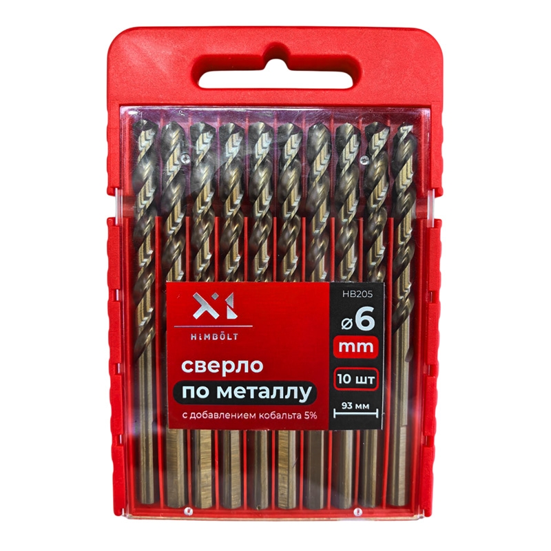Сверло по металлу с кобальтом 5% P6M5K5 6,0 мм HIMBOLT 10 шт.пластиковый бокс
