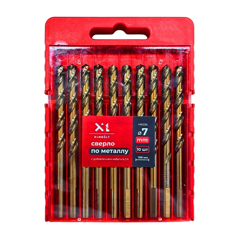 Сверло по металлу с кобальтом 5% P6M5K5 7,0 мм HIMBOLT 10 шт.пластиковый бокс