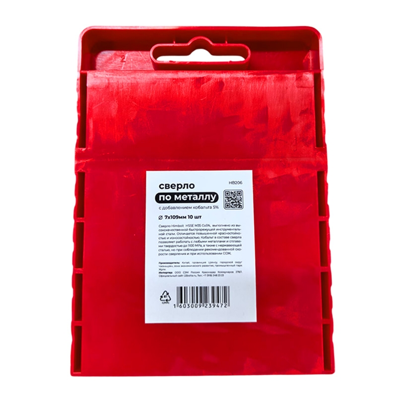 Сверло по металлу с кобальтом 5% P6M5K5 7,0 мм HIMBOLT 10 шт.пласт.бокс выполнено из высококачественной быстрорежущей инструментальной стали. Отличается повышенной красностойкостью и износостокойстью. Кобальт в составе сверла позволяет работать с любыми металлами и сплавами твердостью до 1100 МРА, а также с нержавеющей сталью, но при соблюдении рекомендованной скорости сверления и при использовании СОЖ.