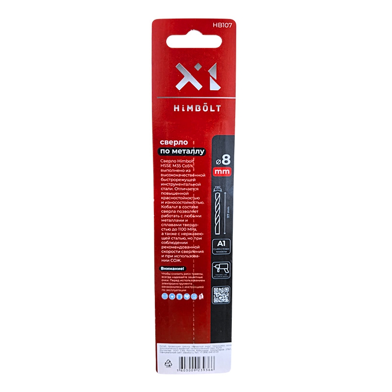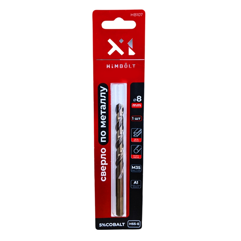 Сверло по металлу с кобальтом 5% P6M5K5 8,0 мм HIMBOLT 1 шт.блистер