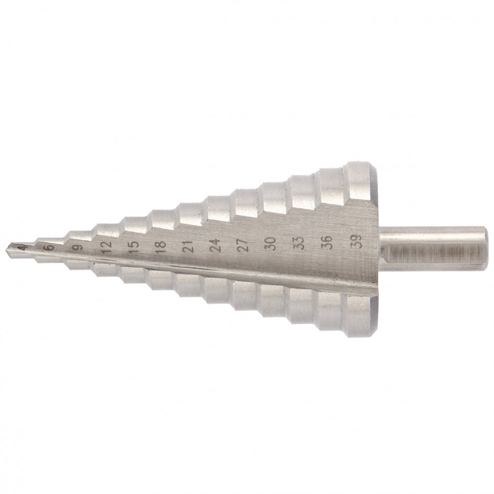 Сверло ступенчатое 4-6-9-12-15-18-21-24-27-30-33-36-39 мм,по мет..Р6М5,трехгр.хв.Барс