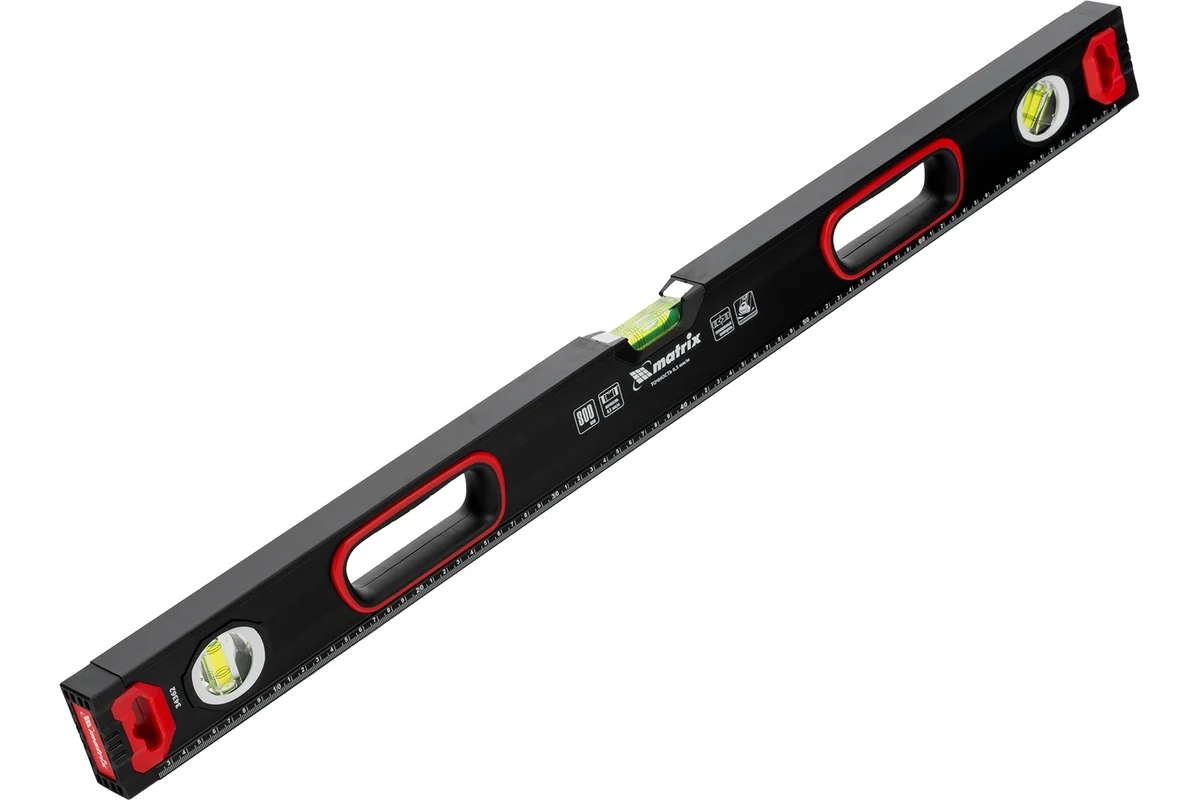 Уровень алюминиевый усиленный фрезерованный 3 глазка 2комп.рук. 800 мм Matrix