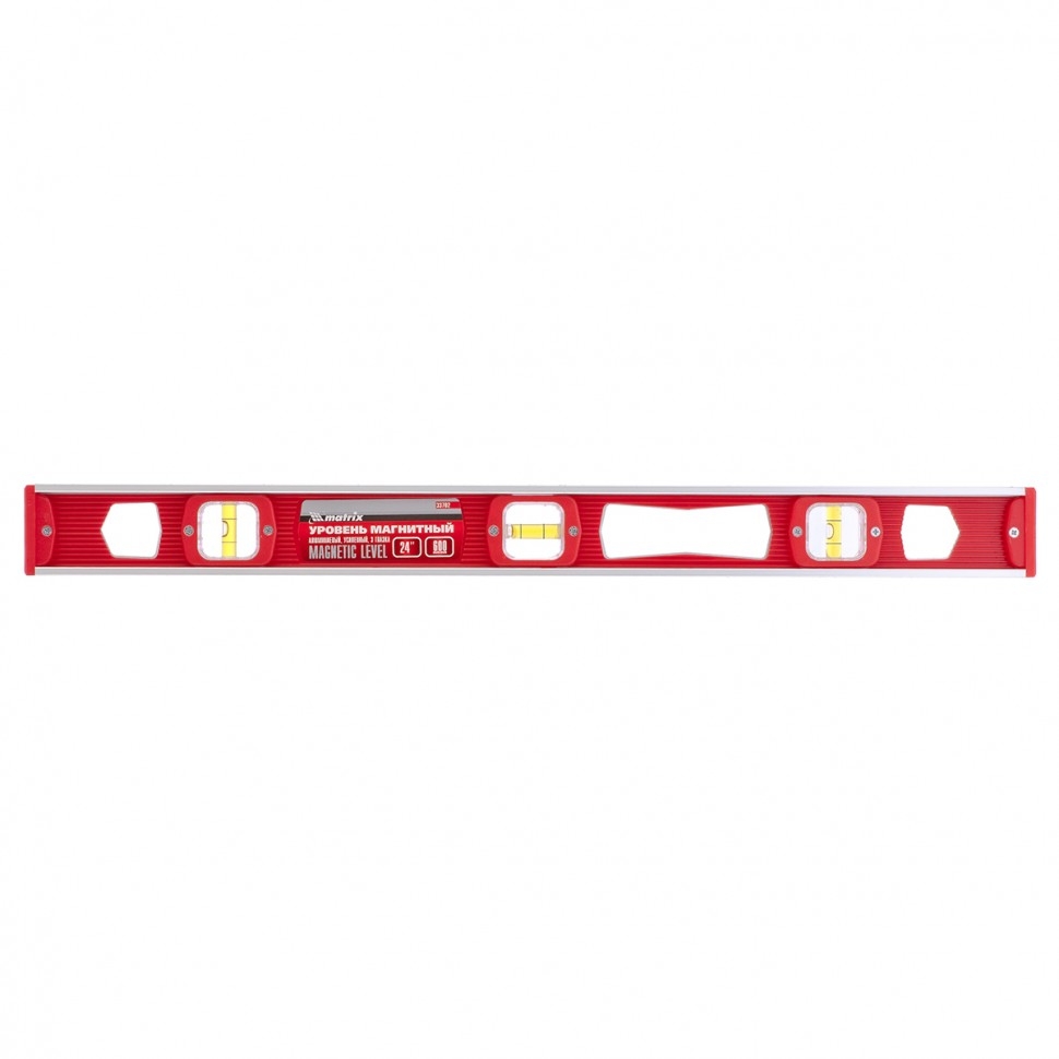Магнитный уровень Matrix 33702 длиной 600 мм — это измерительный инструмент с 3 глазками для проверки горизонтальных и вертикальных поверхностей. Пригодится на строительной площадке или в быту при выравнивании поверхностей, монтаже конструкций, отделке помещений и других операциях. Погрешность не превышает 1 мм на каждый метр (0,057 градуса). Для определения отклонения вертикали 90 градусов необходимо использовать пузырьковую ампулу только в верхнем положении уровня. Только базовая поверхность является рабочей (противоположная ампуле 180 градусов). Корпус инструмента выполнен из прочной пластмассы и легкого, но прочного алюминиевого каркаса. Благодаря магнитным свойствам уровень можно зафиксировать на металлических поверхностях, это повышает удобство работы.
