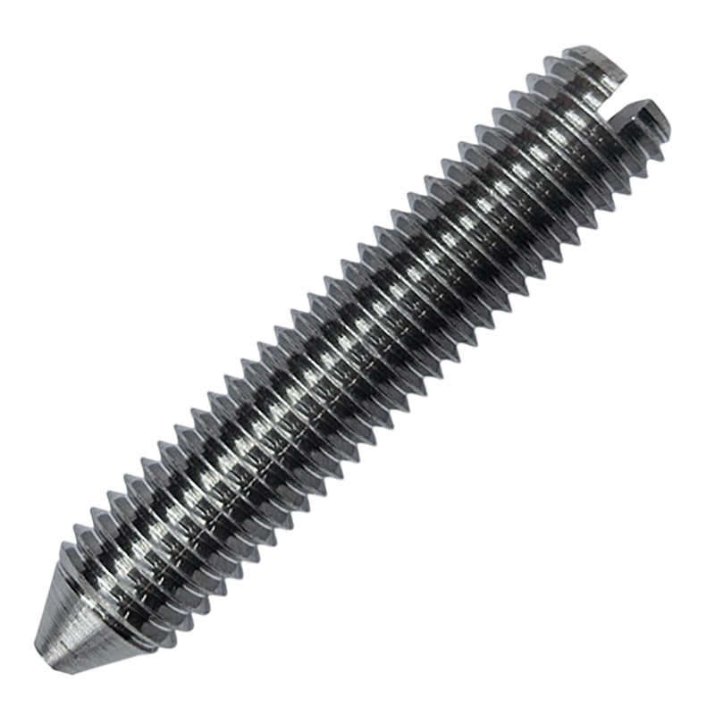 Стопорный винт с коническим концом и прямым шлицем предназначен для создания соединений, которые не работают на растяжение. Он широко используется в машиностроении и приборостроении для фиксации шестерёнок, подшипников, колец, втулок на валах.