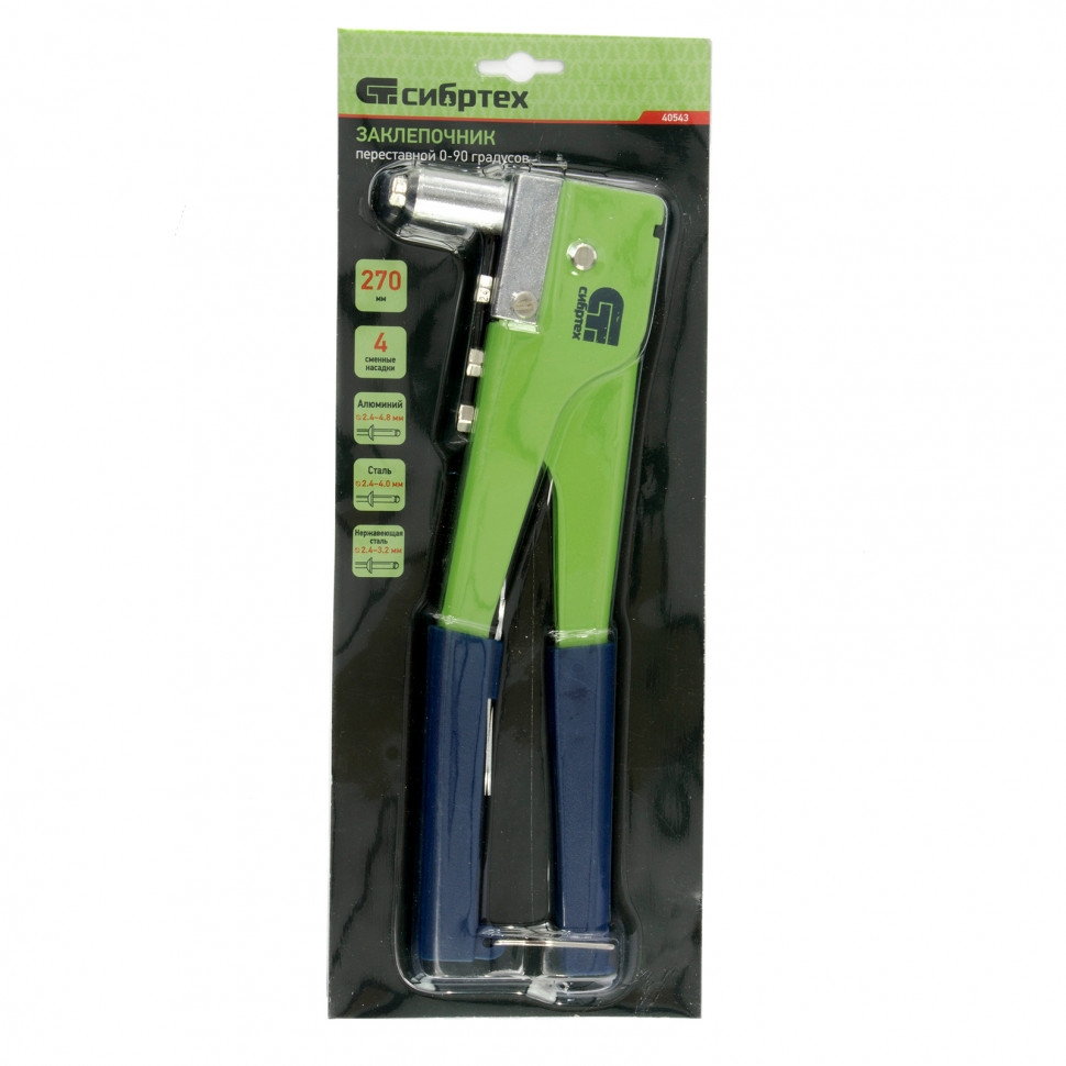 Заклепочник 270 мм, заклепки 2,4-3,2-4,0-4,8 мм переставной 0-90град Сибртех
